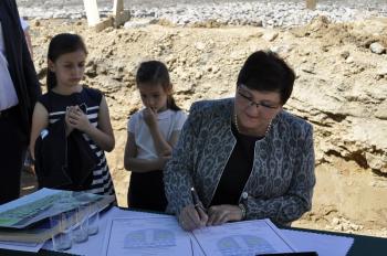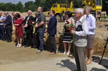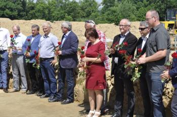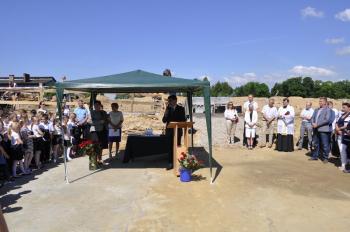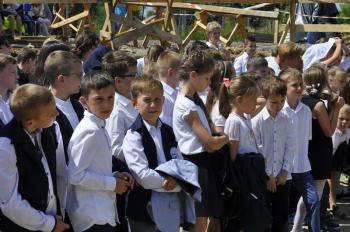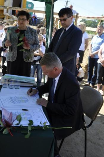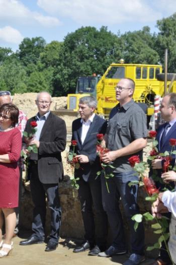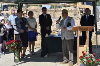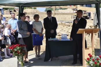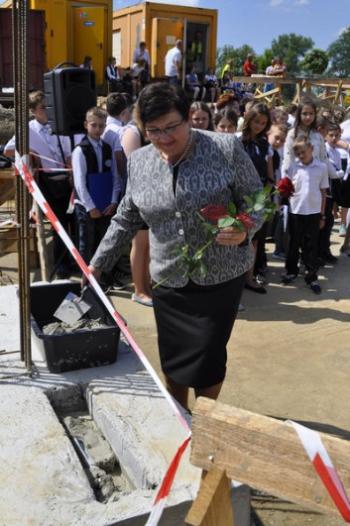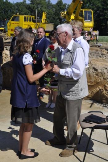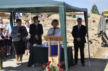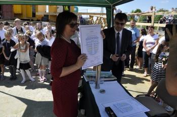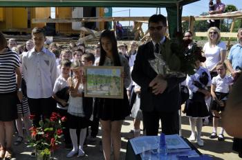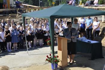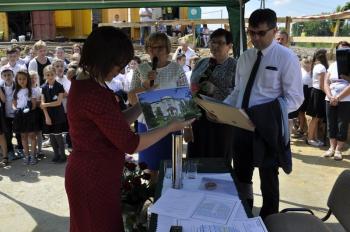Dyrektor Szkoły Podstawowej Małgorzata Bucka długo wyliczała osiągnięcia podopiecznych: wyniki egzaminów końcowych, wysokie lokaty w konkursach matematycznych i plastycznych, a także sukcesy w zawodach sportowych – pomimo braku sali gimnastycznej. Pani dyrektor poprosiła następnie uczniów, żeby wszystkim gościom, bez których poniedziałkowa uroczystość nie doszłaby do skutku, wręczyli róże wdzięczności. Wójt Albert Bartosz został obdarowany całym bukietem oraz rysunkiem przedstawiającym przyszłą szkołę.
