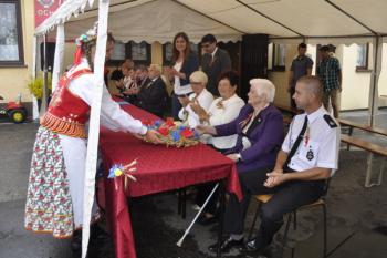 Tę podniosłą ceremonię zakończyło wręczenie wieńca dożynkowego Marcie Kuwik, założycielce miejscowego Koła Gospodyń Wiejskich uhonorowanej w czerwcu tytułem Zasłużonej dla Gminy Oświęcim.