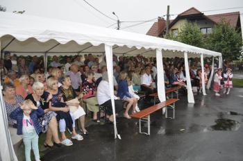 Pogodzie nie udało się zepsuć Dożynek. Mimo deszczu scenę przy Domu Ludowym wypełnili śpiewacy i tancerze, a widownia dopisała.