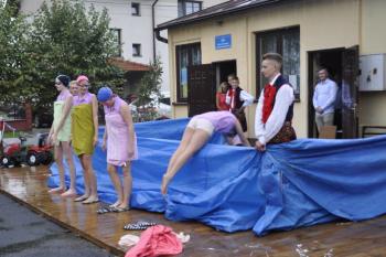 Dzięki niemu Dożynki zyskały nowy symbol: parasol, którego użyczył prowadzącym.