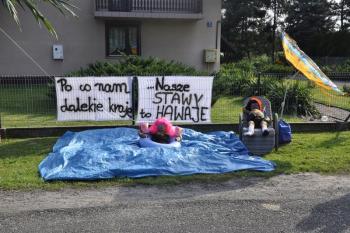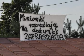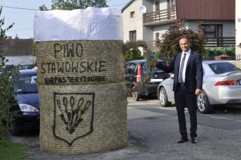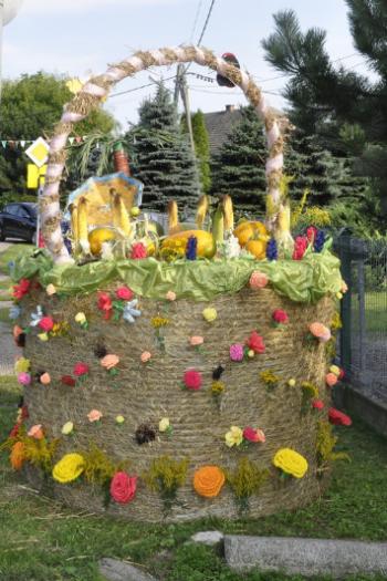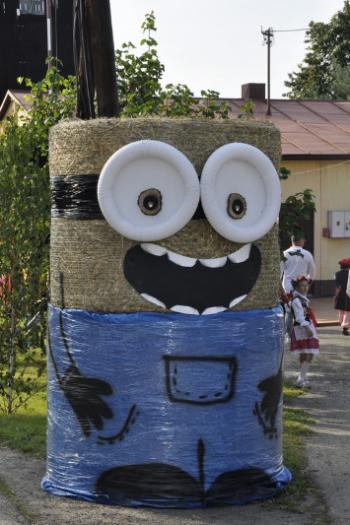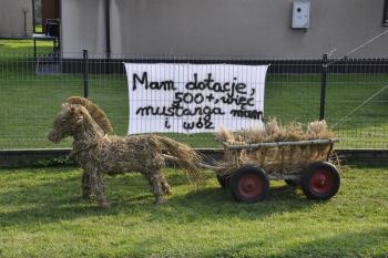 Uczestników witała niebanalna i dowcipna scenografia nawiązująca do kultury popularnej i współczesnych zjawisk. Zręczne łączenie tradycji z teraźniejszością od lat jest znakiem szczególnym Dożynek organizowanych w jednym z najmniejszych sołectw naszej gminy.