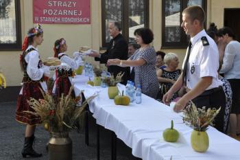 Nastoletni mieszkańcy Stawów Monowskich w tradycyjnych krakowskich strojach ludowych wręczyli symboliczne bochenki chleba i dożynkowy wieniec gościom i reprezentantom miejscowych organizacji. Uhonorowani w ten sposób zostali: zastępca wójta Halina Musiał, senator RP Andrzej Pająk, wiceprzewodniczący Rady Gminy Sławomir Domżał, sołtys Włosienicy Władysław Zaliński, ksiądz proboszcz Rafał Jończy, dyrektor Samorządowego Centrum Usług Wspólnych Agata Michalska, dyrektor przedszkola we Włosienicy Leokadia Kukla, przewodniczące kół gospodyń Anna Hałat (Stawy Monowskie) i Maria Stachura (Włosienica) oraz prezes miejscowej OSP Krzysztof Ludwinek.