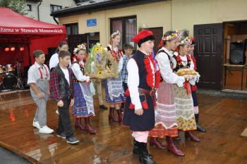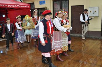 Dożynki w Stawach Monowskich zawdzięczają specyficzny koloryt góralskim akcentom. W tym roku znaną bywalcom tych imprez Elę z Zawoi zastąpił jej krajan Szymon. Starał się odpędzić nieprzyjazną aurę przyśpiewką, ale chociaż goście podjęli słowa "Nie lyj, dyscu nie lyj", padało przez całe popołudnie.