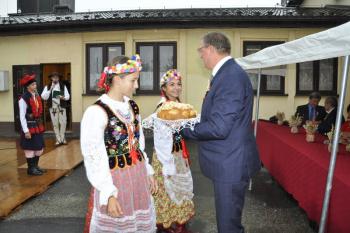Senator Andrzej Pająk, dziękując za zaproszenie, akcentował rolę i siłę tradycyjnych wartości. Z kolei wójt Mirosław Smolarek wyraził wdzięczność za gościnność, również wtedy, gdy do Polski, a także do naszej gminy dotarli uchodźcy z Ukrainy. Sołtys Arkadiusz Kuwik podziękował współmieszkańcom za przygotowanie uroczystości. Dziewczęta i chłopcy w ludowych strojach, zaśpiewawszy "Plon niesiemy, plon", wręczyli zwyczajowy bochen chleba sołtysowi a przyozdobiony kwiatami wieniec z kłosów wójtowi.