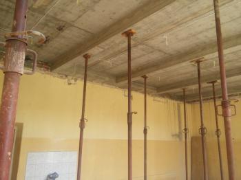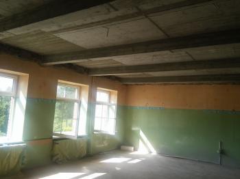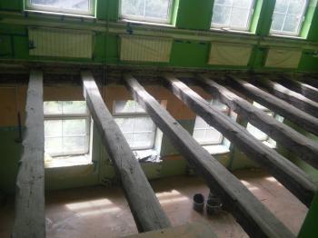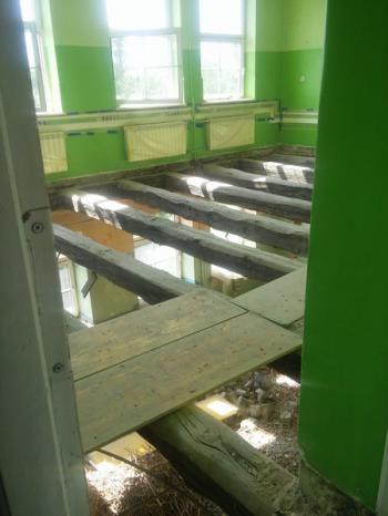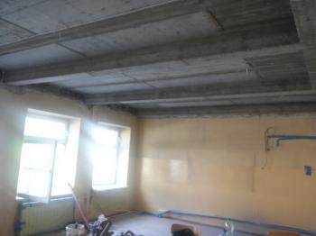 - wymianę stropów nad parterem w trzech pomieszczeniach lekcyjnych (rozbiórka istniejących stropów drewnianych i wykonanie stropów żelbetowych monolitycznych),