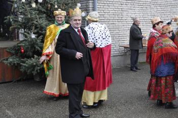 Kolędowanie zaintonował Chór Męski pod kierunkiem Edwarda Baścika, w którym znaleźli się również sołtys Dworów Drugich Stanisław Nowotarski i sołtys Stawów Monowskich Arkadiusz Kuwik. Ksiądz proboszcz Jan Dewera podkreślił szczególną więź łączącą w tym dniu Włosienicę z Ziemią Świętą i poprosił o sformowanie Orszaku, który następnie pomaszerował w kierunku kościoła.