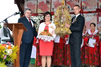 Senator Andrzej Pająk złożył rolnikom wyrazy szacunku, uznania i podziękowania. Zwrócił też uwagę, że dożynkowe zwyczaje i obrzędy kształtują nie tylko lokalną kulturę, ale również narodową tożsamość. Iwona Gibas odczytała list od wicepremier Beaty Szydło, a Urszula Dąbrowska od posła Zbigniewa Biernata.