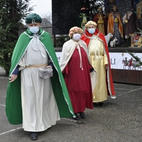 Kacper, Melchior i Baltazar przybieżeli, przestrzegając sanitarnego reżimu. Niecodziennym dopełnieniem tunik, peleryn i turbanów stały się ochronne maseczki. Jednak w dobie pandemii to zderzenie tradycji ze współczesnością nie budziło zdziwienia.