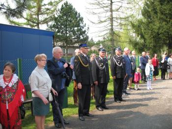 Zabrali głos goście zaproszeni: Pan Piotr Polanek, oraz w imieniu wójta gminy Oświęcim Pani Halina Musiał, po czym nastąpiło wyprowadzenie pocztu sztandarowego OSP.