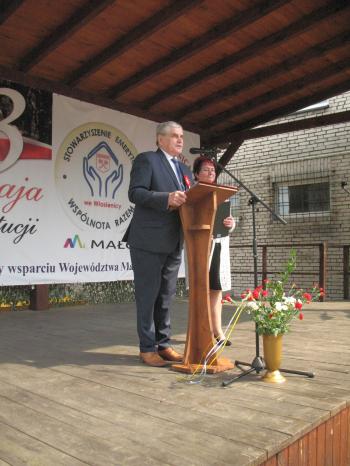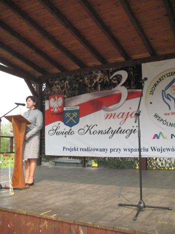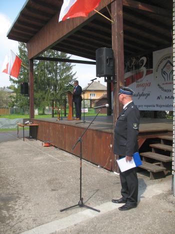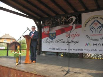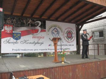 Rozpoczęła się parada Strażacka, przemarsz, meldunki odegranie hymnu narodowego oraz wciągnięcie flagi na maszt. Po czym Sołtys Władysław Zaliński wygłosił referat dotyczący Konstytucji 3 Maja i jej znaczenia dla historii Polski.  W wielkim skrócie można przedstawić znaczenie tego referatu: