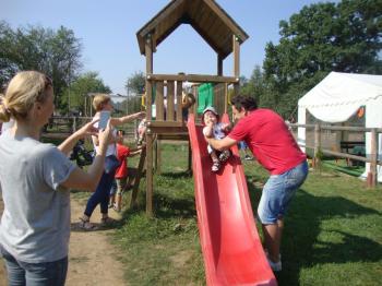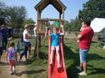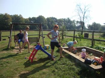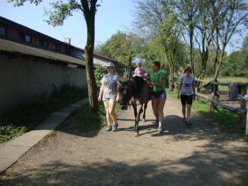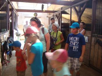Podczas spotkania miały miejsce różne atrakcje m.in. zwiedzanie stadniny, przejażdżka na koniach, zabawy integracyjno-ruchowe z animatorem (wyścigi, slalom przez opony, przeciąganie liny, zabawy przy muzyce). Dzieci z zapałem korzystały z możliwości zabawy na placu zabaw.