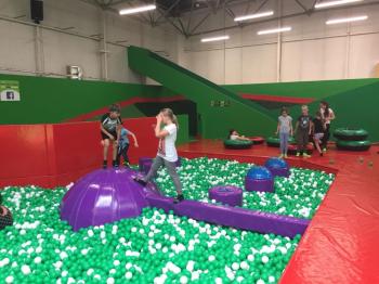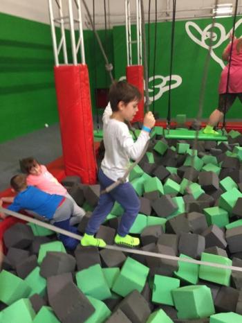 Kolejnym etapem naszej wycieczki była wspólna zabawa w Gojump czyli Parku Trampolin. Na początek spotkania miała miejsce rozgrzewka. Później zgodnie z zasadą „skacz i baw się dobrze” , aby „oderwać się od wszystkiego co ciąży” mogliśmy skakać na trampolinach, trenować skoki do basenu z gąbkami lub wsady do kosza. Wszyscy otrzymaliśmy Gojumpetki czyli specjalne skarpetki antypoślizgowe.