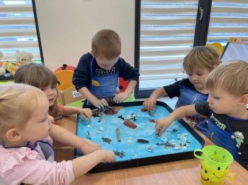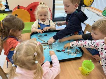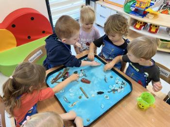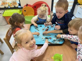 Do grupy Biedronek zawitał niezwykły gość – ocean! Podczas zajęć sensorycznych dzieci mogły odkrywać tajemnice podwodnego świata, a wszystko to dzięki zabawie z cieczą nienewtonowską. Nietypowa konsystencja masy pozwoliła najmłodszym na eksperymentowanie, ugniatanie, rozciąganie i obserwowanie, jak zmienia się pod wpływem ruchu.