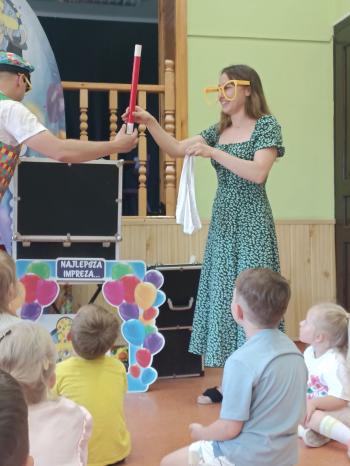 W dniu 4 czerwca na terenie ogrodu w naszym przedszkolu odbył się Piknik Rodzinny. Rozpoczął się od wspaniałej zabawy przy muzyce i iluzji z Panem Humorkiem. Następnie dzieci wspólnie z rodzicami uczestniczyli w różnorodnych atrakcjach jak: malowanie twarzy, kolorowe tatuaże, dmuchane zamki, robienie kolorowych bransoletek, czy kolorowe warkoczyki oraz loteria fantowa, wata cukrowa, lody, słodkie wypieki, owoce, kiełbaski z grilla itp. To był cudownie spędzony czas z rodzicami!!!! Serdecznie dziękujemy sponsorom: firmie „el-tim”, „słodki leniuch”, „Rajskie dmuchańce”, firma „MOTO PASJA”, Park Famili Fun Park, Agatmed.- fizjoterapia – Matia Agatowska_ świętek, firma „Syntos, Park rozrywki „Zatorland”, Inwałd park, Przedsiębiorstwo Wodociągów i Kanalizacji sp.z o.o., sklwp „Groszek”, sklep „Delikatesy”, firma „Protech, „Figa z Makiem”, Vitamina”, Kino Kijów, sklep „sport Korczyk, Piekarnia w Brzeszczach- GS” Samopomoc Chłopska w Brzeszczach.