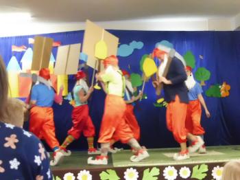 Występy rodziców przedszkolaków z naszego przedszkola, stały się już niemal tradycją, bowiem od trzech lat występują oni przed dziecięcą publicznością 6 grudnia, tuż przed wizytą Św. Mikołąja. W tym roku publiczność miała okazję podziwiać kunszt aktorski rodziców, w bajce pt. ,,Nie ma tego złego, co by na dobre nie wyszło," nagrodzonej jak zawsze gromkimi brawami. Oczywiście zanim przedstawienie trafiło na scenę tutejszej remizy OSP, zostało poprzedzone licznymi próbami, konsultacjami, dyskusjami na temat dekoracji, choreografi i charakteryzacji poszczególnych postaci. Wszystkie spotkania odbywały się w ciepłej, niemal rodzinnej atmosferze, gdzie z każdym spotkaniem wszyscy coraz bardziej czuli się częścią zespołu. Ta zabawa w teatr zdecydowanie wszystkim się podoba, ponieważ mamy w swoim gronie osoby, których dzieci nie uczęszczają już do naszego przedszkola, a mimo to są one z nami już kolejny sezon.  Należy podkreślić duże zaangażowanie wszystkich uczestników naszych amatorskich warsztatów teatralnych, którzy zawsze z pasją podchodzą do tego tematu i starają się tak ułożyć swoje prywatne sprawy, by znaleźć chwilę na ,,wejście w magiczny świat bajki," a to wszystko w słusznej sprawie dla naszych najmłodszych.