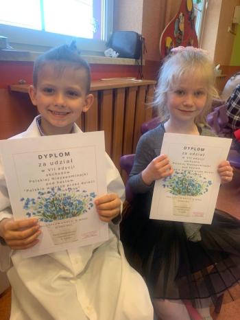 10 maja 2023r. nasze przedszkolaki wzięły udział w konkursie ,,Polska Niezapominajka," organizowanym przez Przedszkole Samorządowe w Rajsku...