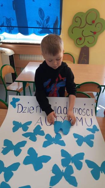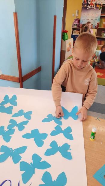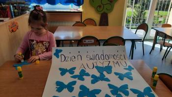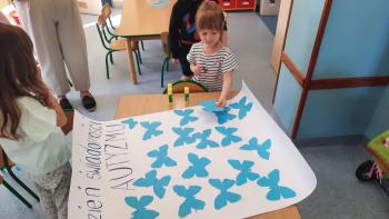 9 kwietnia w grupie Biedronek obchodziliśmy Światowy Dzień Świadomości Autyzmu. Przedszkolaki poznały problemy osób ze spektrum autyzmu i ich trudności w rozumieniu świata. Uczestniczyły w zabawach sensorycznych. Ponadto dzieci wykonały wspólną pracę plastyczną „Niebieskie motyle”. Celem tego dnia było rozbudzenie tolerancji wobec rówieśników, którzy inaczej rozwijają się i dostrzegają świat. Budowanie otwartości i akceptacji wśród przedszkolaków.