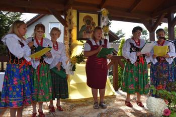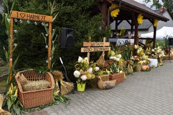 Uroczystość rozpoczęła się Mszą Świętą polową przy OSP Harmęże, której przewodniczył ks. Arkadiusz Bąk. Po nabożeństwie sołtys Harmęż, Adam Zieliński serdecznie przywitał wszystkich zebranych gości i mieszkańców. Następnie głos zabrał wójt gminy Oświęcim Mirosław Smolarek, otwierając oficjalną część dożynek.