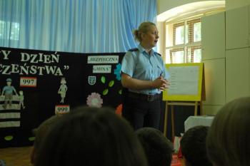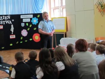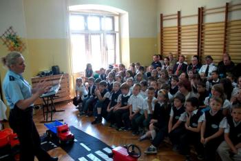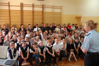 Naczelnik OSP w Porębie Wielkiej Sławomir Narza podkreślił, że edukacja uczniów w szkole od najmłodszych lat daje oczekiwane efekty. Nie ma już pożarów spowodowanych zabawą dzieci zapałkami, a uczenie zasad i przepisów ruchu drogowego sprzyja mniejszej ilości wypadków na wsi z udziałem dzieci. Z kolei aspirant Marzena Ptasińska przeprowadziła krótką pogadankę na temat bezpieczeństwa dzieci na drogach oraz zagrożeń wynikających z niebezpiecznych zachowań nieletnich /namawianie do czynów karalnych, stosowanie używek, wymuszenia, agresja itp./. Przedstawicielka Sanepidu pani Dorota Kram podkreśliła, że szkoła w Porębie Wielkiej jest jedną z nielicznych placówek realizujących szereg zadań związanych z oświatą zdrowotną, profilaktyką i prewencją.