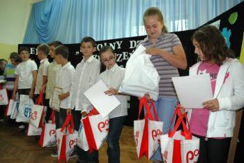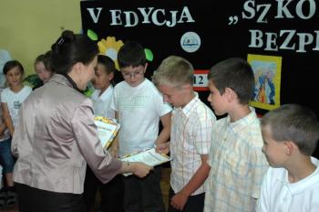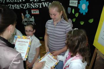 W drugiej części spotkania odbył się konkurs wiedzy na temat zasad bezpieczeństwa na drodze, znajomości znaków drogowych oraz udzielania pierwszej pomocy. Do zmagań przystąpiły reprezentacje siedmiu placówek szkolnych z gminy Oświęcim. Walka była zacięta, a między drużynami były minimalne różnice punktowe. Wszyscy zawodnicy wykazali się niezwykłą wiedzą, za co otrzymali z rąk pani Wójt nagrody indywidualne (gadżety związane ze zbliżającym się EURO 2012), oraz dyplomy oraz elementy odblaskowe dla wszystkich uczniów kl. I-III z gminy Oświęcim.