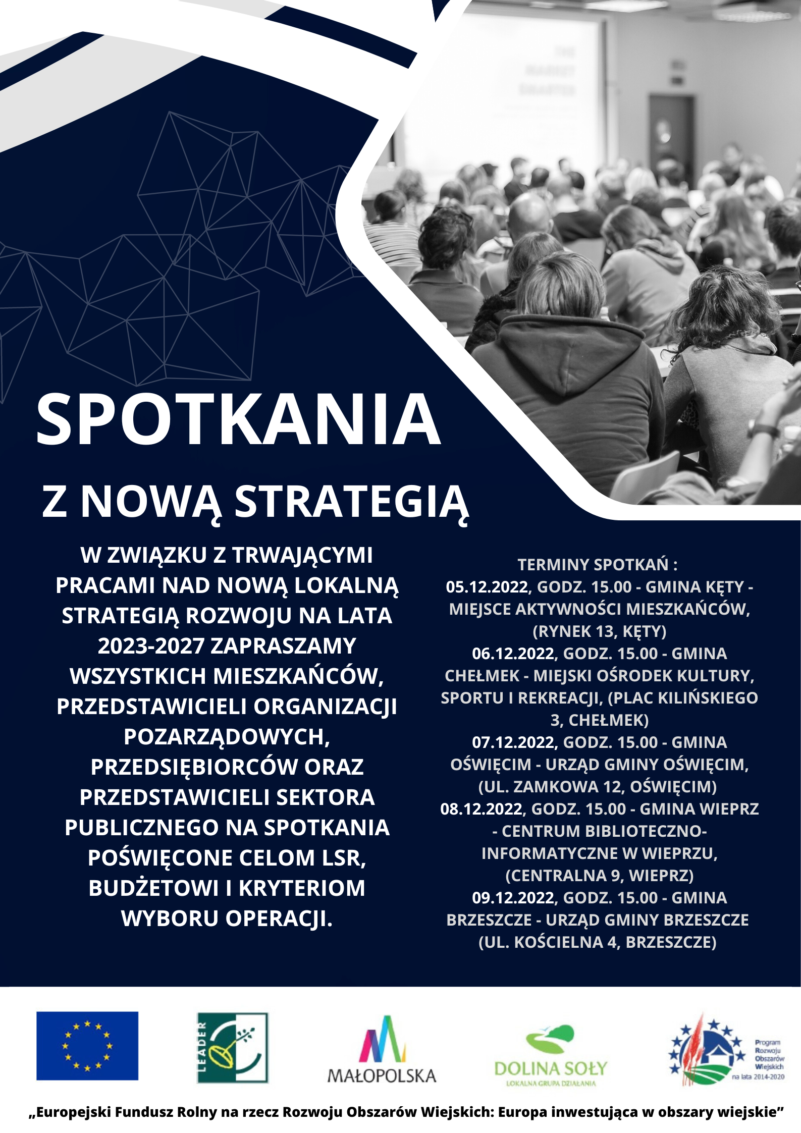 Zapraszamy wszystkich mieszkańców, przedstawicieli organizacji pozarządowych, przedsiębiorców oraz przedstawicieli sektora publicznego na spotkania poświęcone celom Lokalnej Strategii Rozwoju, budżetowi i kryteriom wyboru operacji. Spotkanie w Urzędzie Gminy Oświęcim odbędzie się 07.12.2022, o godz. 15.00.