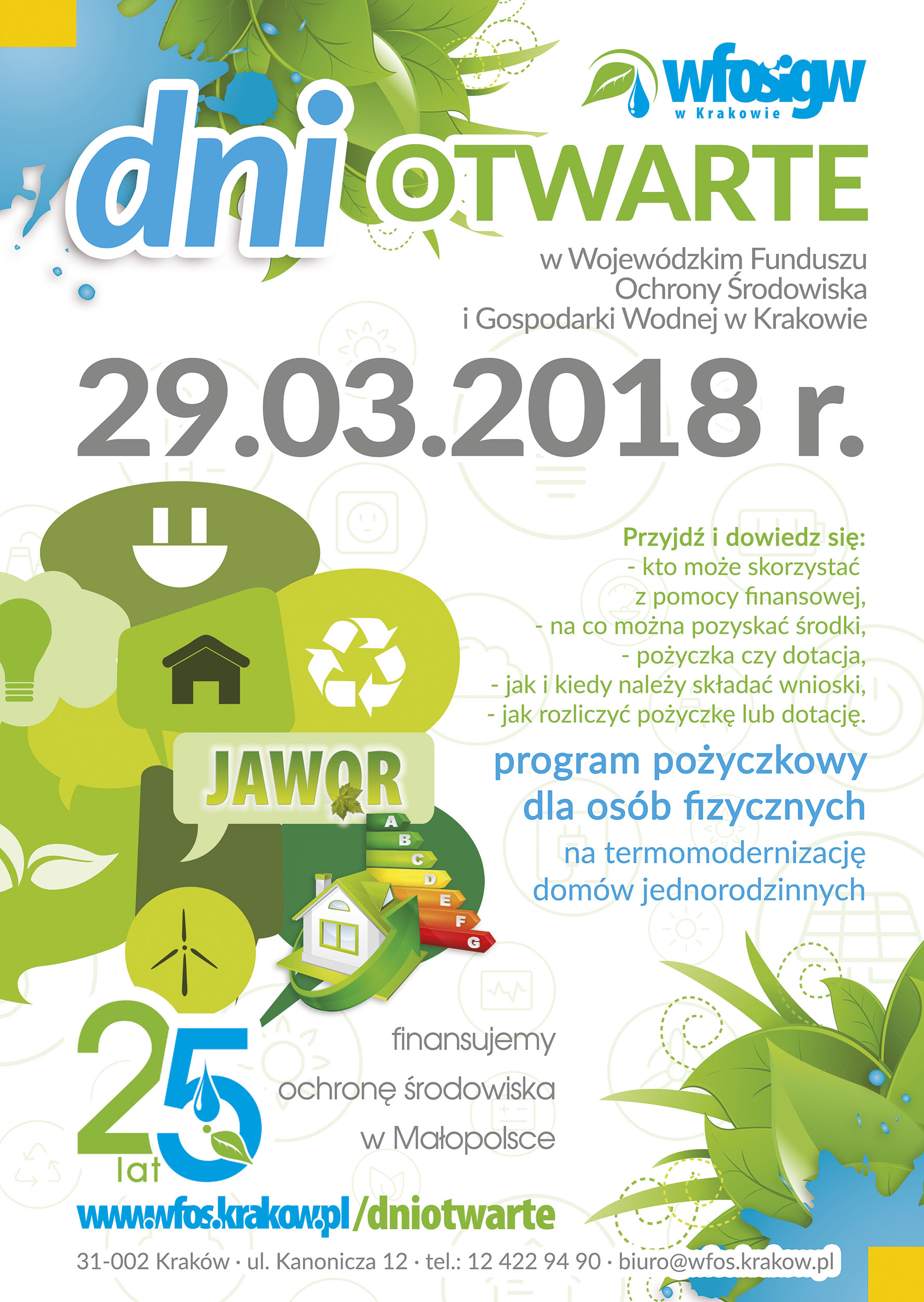 W imieniu Prezesa Zarządu Wojewódzkiego Funduszu Ochrony Środowiska i Gospodarki Wodnej w Krakowie, zapraszamy na Dzień Otwarty, który odbędzie się w dniu 29 marca 2018 r.