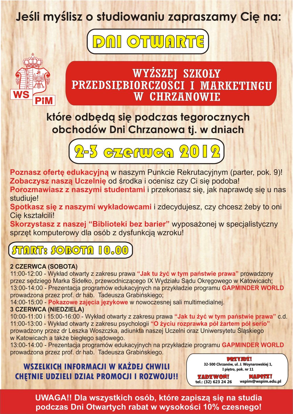 Wyższa Skoła Przedsiębiorczości i Marketingu w Chrzanowie zaprasza na Dni Otwarte - 2-3 czerwca 2012 ...