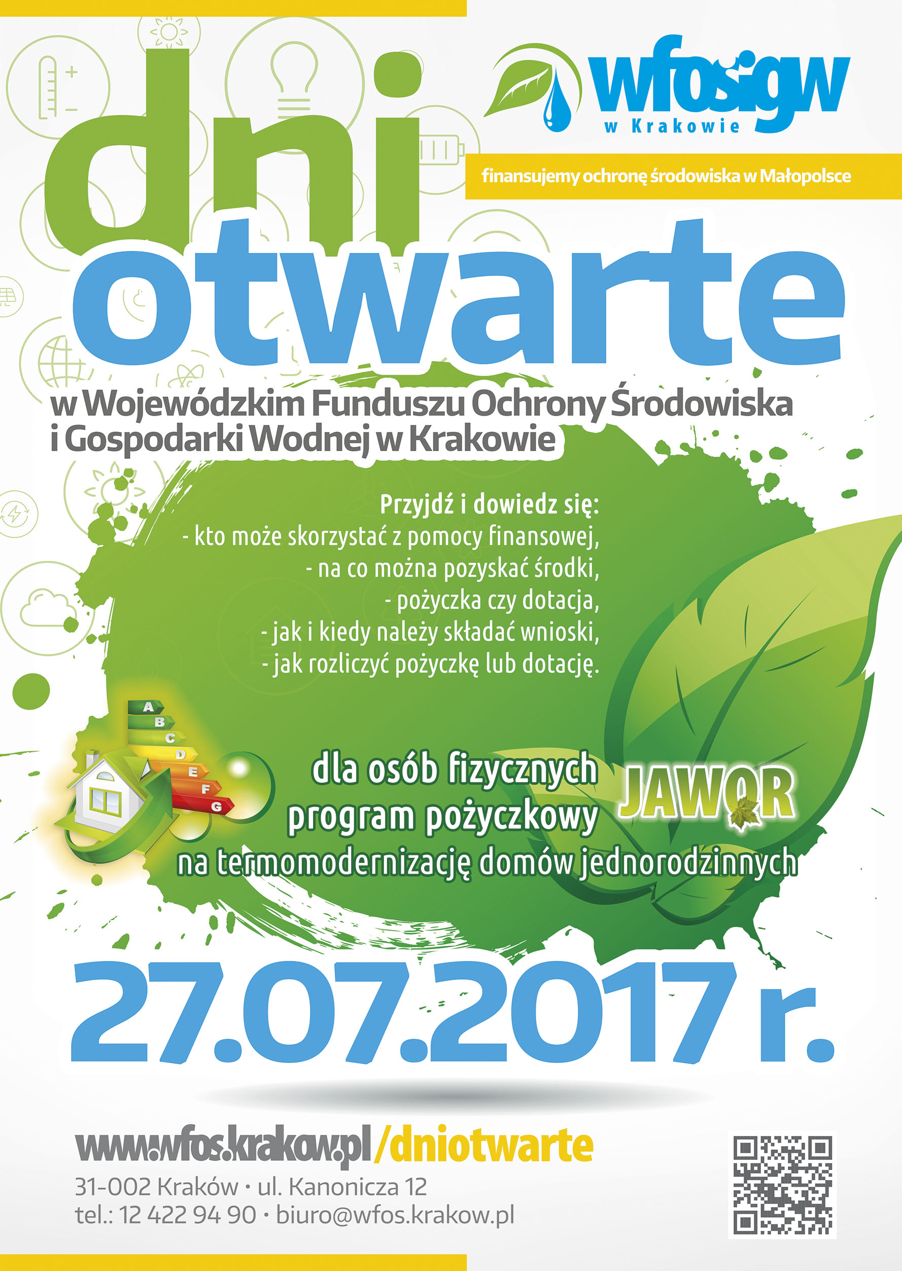 Wszystkich zainteresowanych zapraszamy na Dzień Otwarty Wojewódzkiego Funduszu Ochrony Środowiska i Gospodarki Wodnej w Krakowie, w trakcie którego będzie można uzyskać informację na co można pozyskać środki z Funduszu, w jaki sposób złożyć wniosek oraz jak rozliczyć dotację lub pożyczkę.
