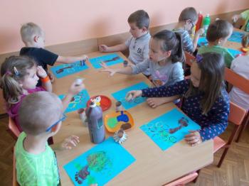Po opracowaniu siatki pojęć "Kotki" przystąpiły do pracy badawczej. W czasie drugiego etapu projektu dzieci poprzez wycieczki, zajęcia w ogrodzie, słuchanie opowiadań, wierszy, ciekawostek, oglądanie ilustracji, albumów, tworzenie kącika tematycznego bogaciły i porządkowały swoje wiadomości dotyczące drzewa.